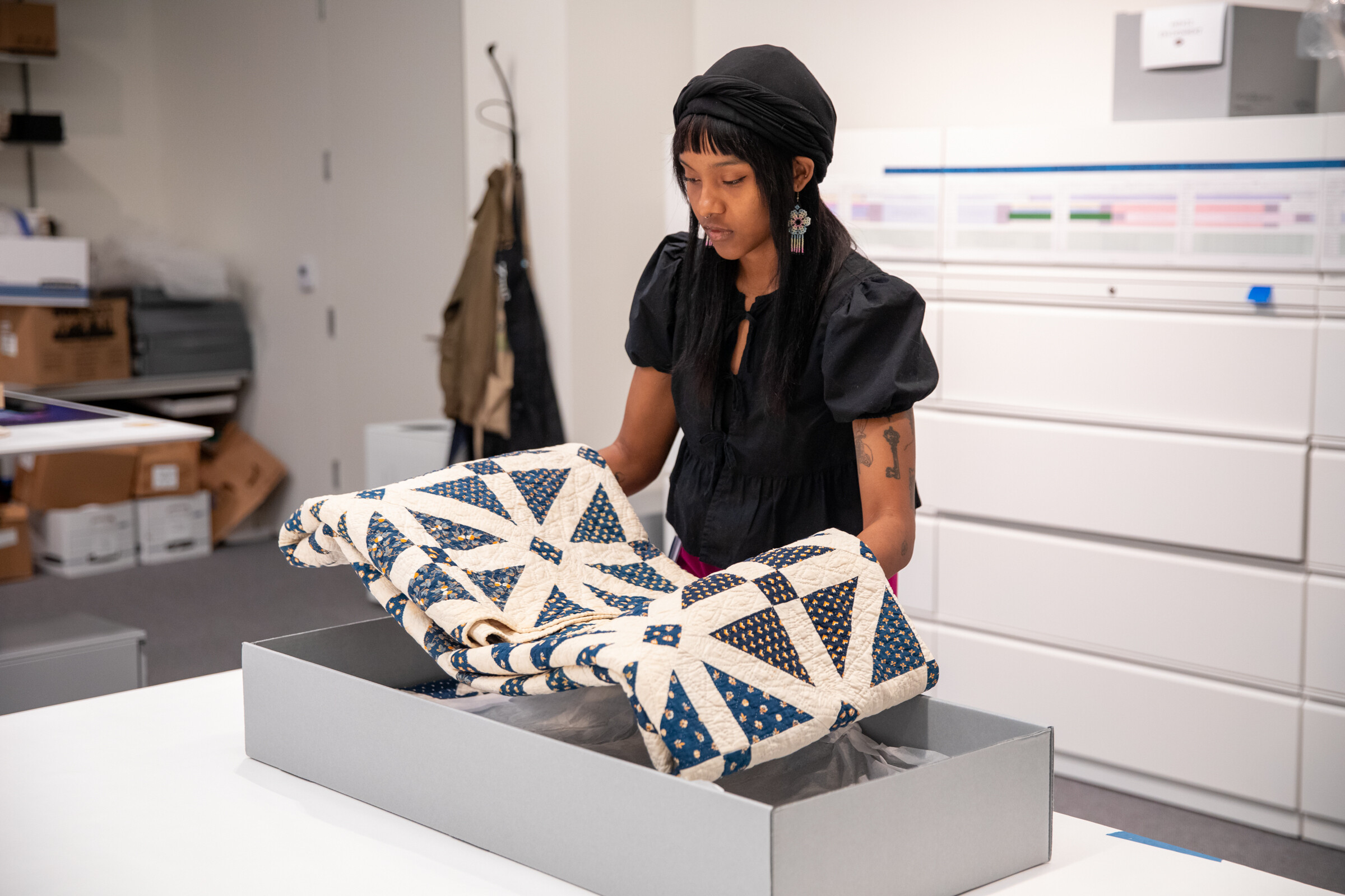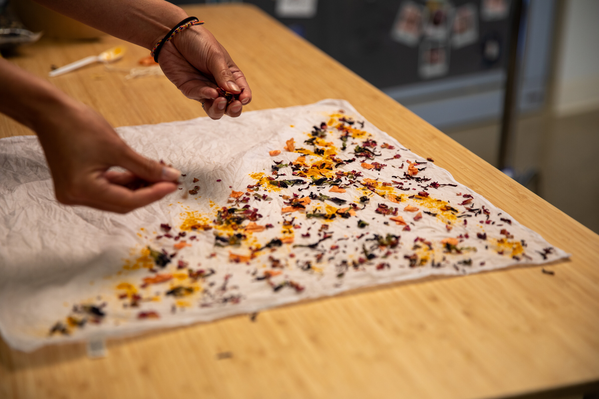 Now, we’re inviting you to dive in with us! Throughout the summer, as we embark on the final design and installation of the exhibition Blue Gold: The Art and Science of Indigo, you’ll have the opportunity for hands-on experimentation with natural dye through a series of workshops held at the Museum. For an in-depth conversation about natural indigo, don’t miss the September Art Break with Carmen Artigas, a designer and champion for environmental sustainability in the fashion industry. At the end of the month, observe the oxidation process – that “wow” moment when indigo dye converts from green to rich blue. Our favorite local textile artist, Sarah Winston, will show us how it’s done! Keep an eye on our calendar for upcoming programming dates.