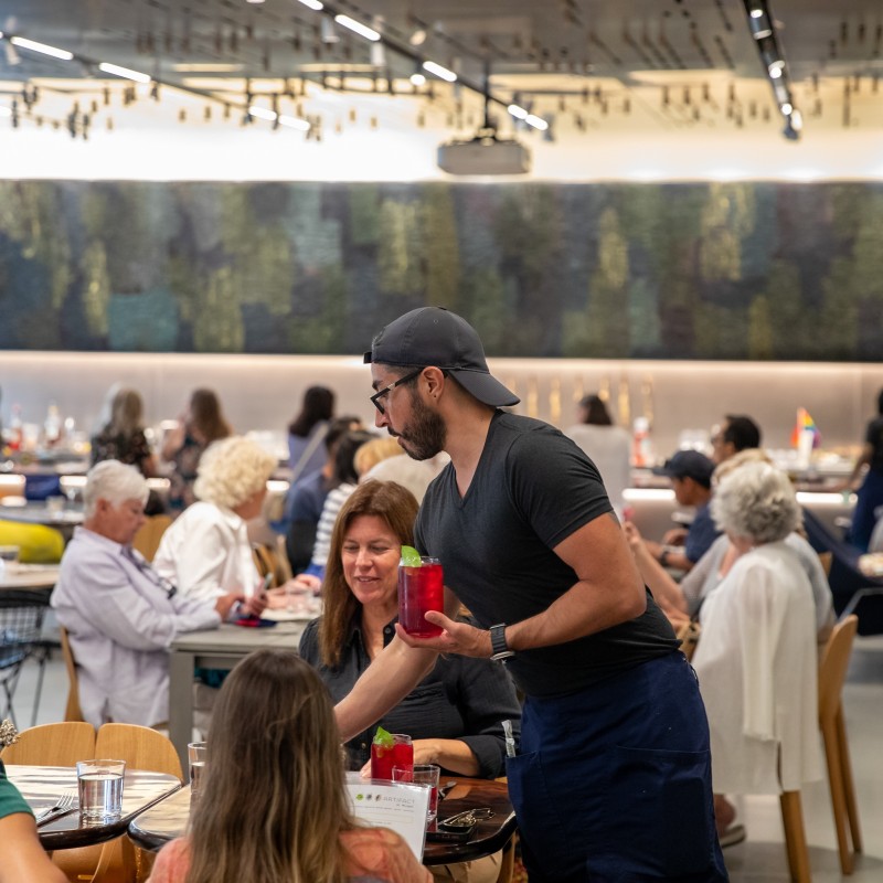 I love summertime at Mingei. With school out and tourism surging, our galleries are busier than ever. Mini Mingei spills outdoors, summer camp is in session at the Museum, and with longer days Balboa Park is bustling well into the evening. Music from the organ concerts floats up to the Prado, and the wonderful aromas from ARTIFACT waft out to the courtyard. And of course, the best place to take it all in is from a comfortable perch on one of our terraces.