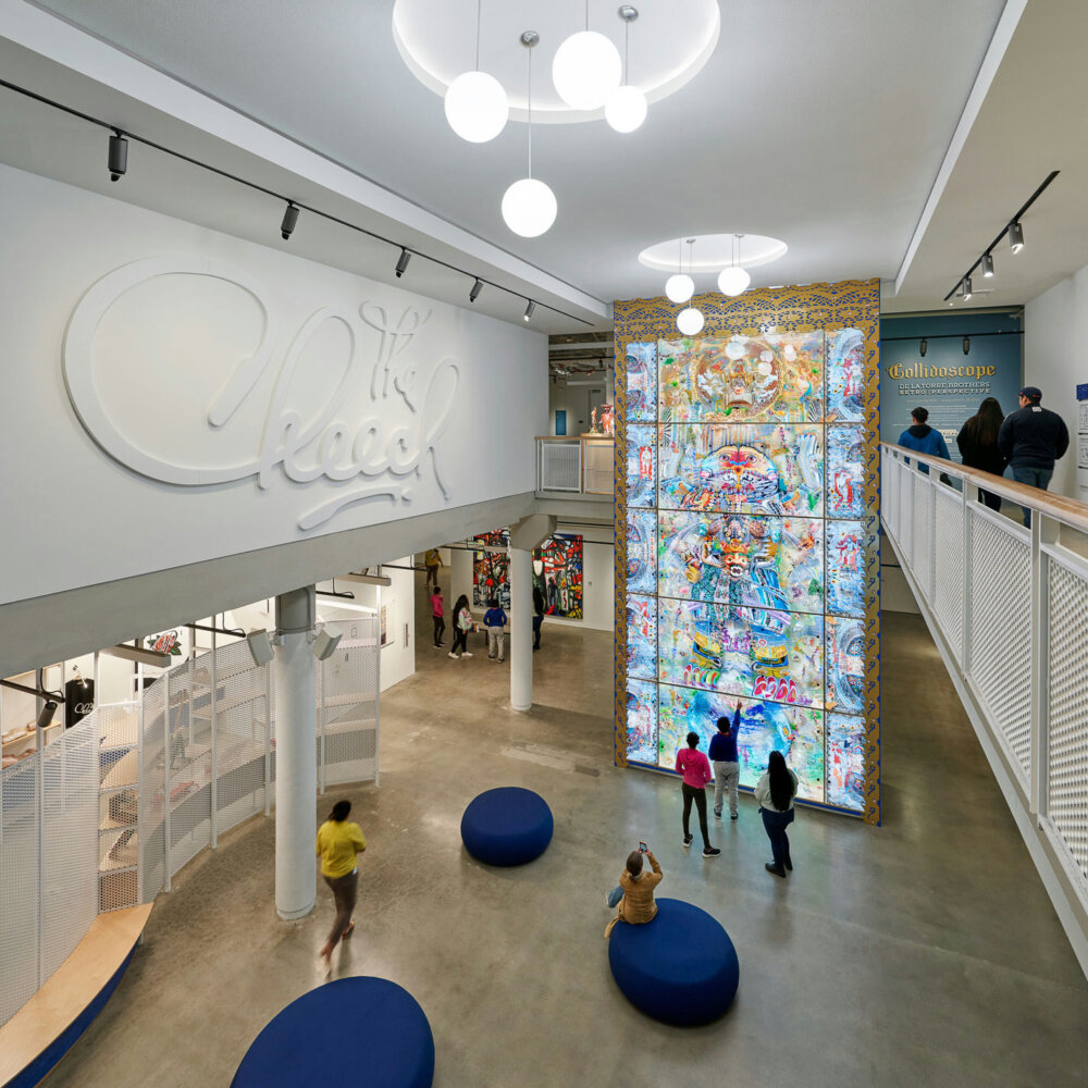 Image credit: Interior of The Cheech Marin Center for Chicano Art & Culture featuring "Gaiatlicue" by Einar and Jamex de la Torre. Photo courtesy of Riverside Art Museum / The Cheech Center for Chicano Art & Culture.