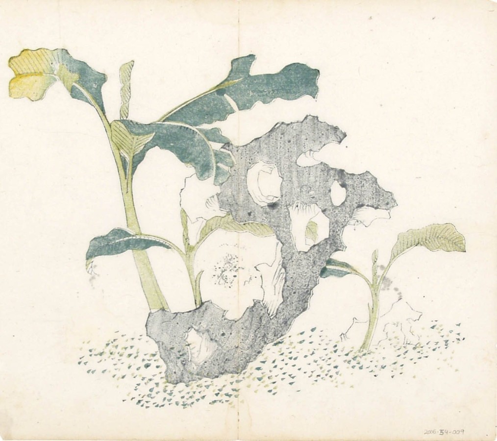 The Chinese woodblock prints that were on display were likely from a nineteenth century edition of Treatise on Calligraphy and Painting of the Ten Bamboo Studio. Although this work, originally printed in the seventeenth century, was intended as a manual of painting, it and other editions are a testament to the precision and skill of Chinese woodcutters and painters. The prints of the Ten Bamboo studio were noteworthy for the technique of printing using multiple blocks; this resulted in prints without outlines and with graded tones of colors. Among the designs featured in these meticulously rendered prints are blossoms, branches and birds and, most notably, gongshi.