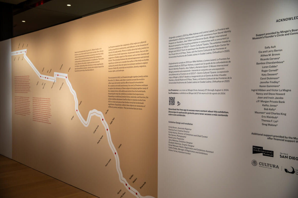 The exhibition, La Frontera, explores the complexity of the U.S.–Mexico border as a physical reality, geopolitical construction, and state of being through the medium of jewelry - an object repeatedly used for communication throughout human history.
