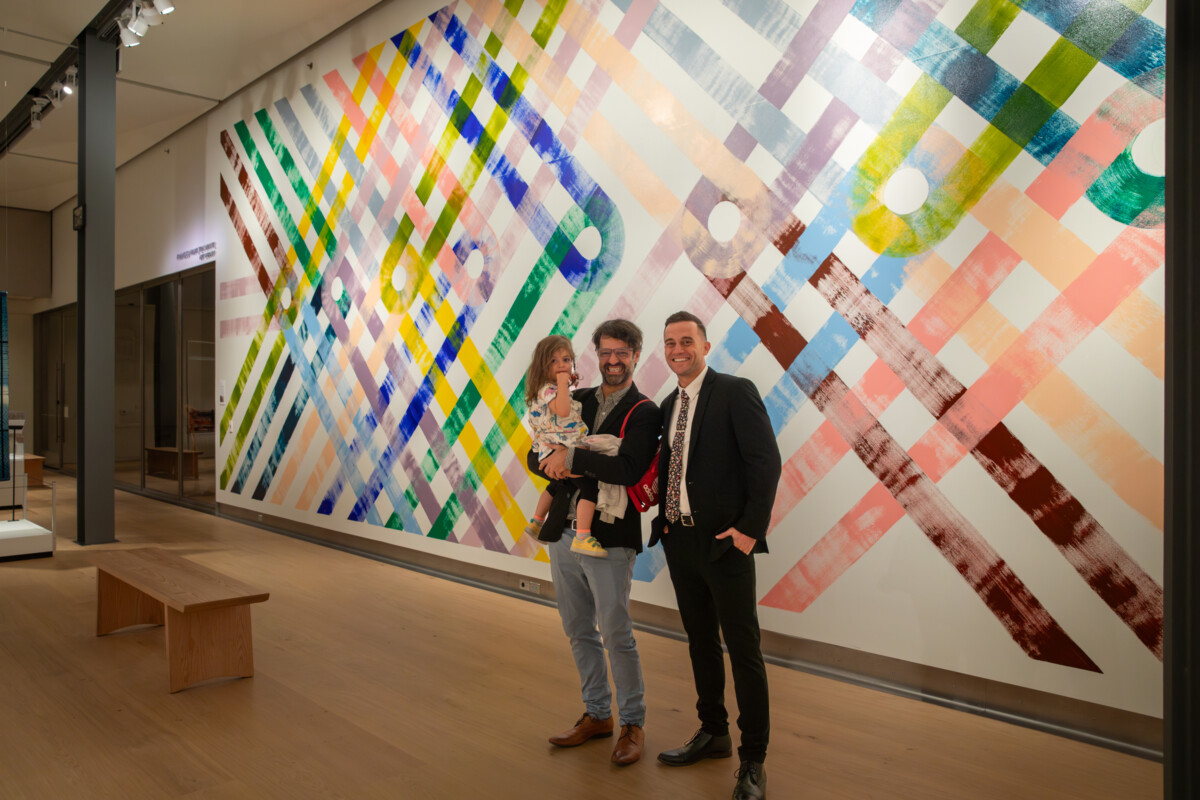 A major component of the exhibition is a large mural by San Diego artist Yomar Augusto, whose lyrical, linear paintings evoke woven forms.