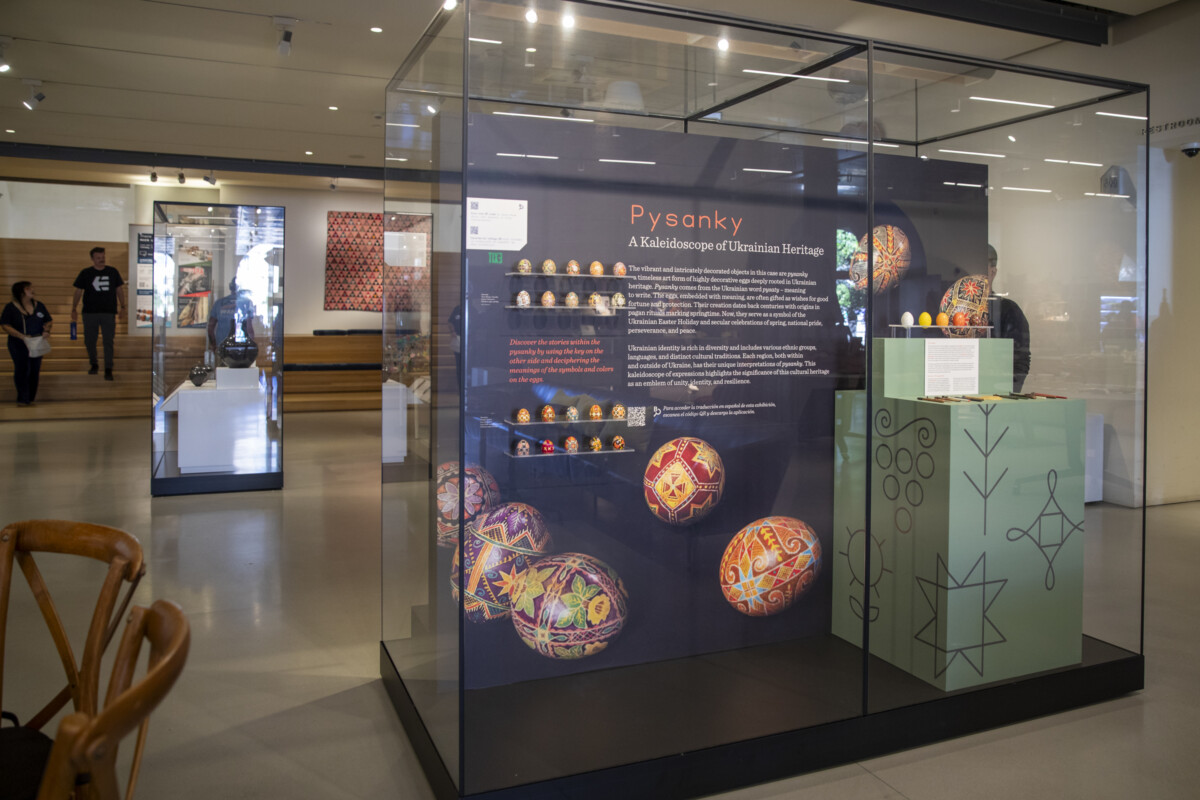 These vibrant and intricately decorated objects are pysanky – a timeless art form of highly decorative eggs deeply rooted in Ukrainian heritage. Pysanky comes from the Ukrainian word pysaty, meaning “to write.” The eggs, which contain designs embedded with deep cultural significance, are often gifted as wishes for good fortune and protection. They also serve as a symbol of the Ukrainian Easter Holiday and secular celebrations of spring, national pride, perseverance, and peace.