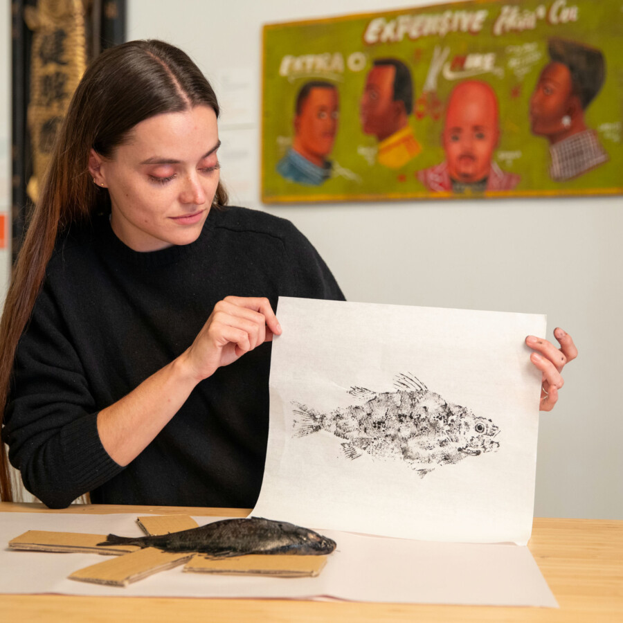 Learn how to make prints using life-like rubber fish and ink.