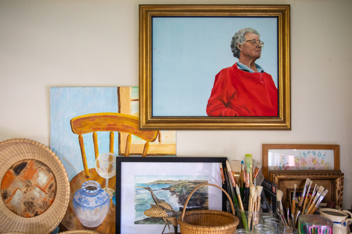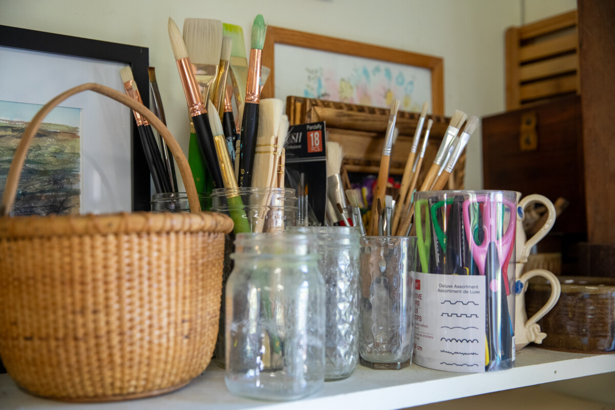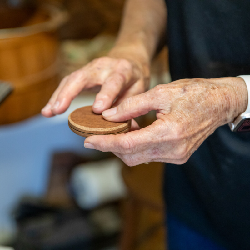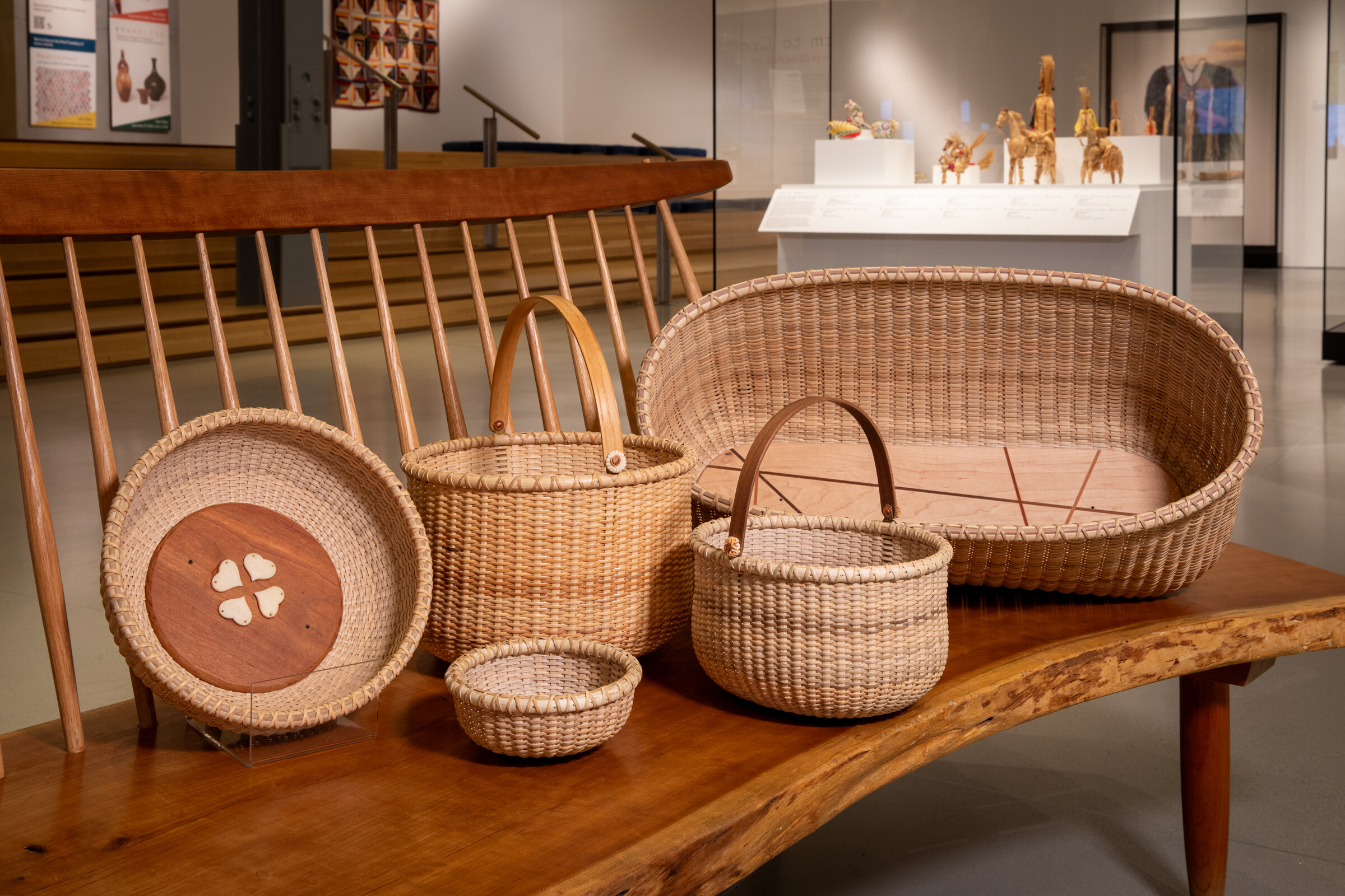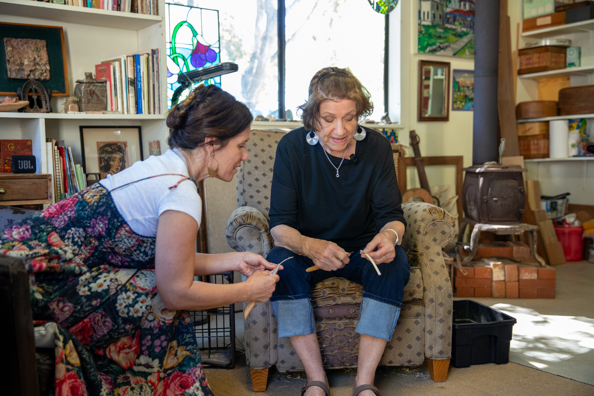Inside the Design CenterBasket weaver Joan Laib talks as she works in her home studio, hands fluttering over a mold—the beginnings of a deep Nantucket-style basket taking shape. Between our conversation and the soundtrack of birds out the open window, she peppers in a “Come on baby,” here and there, talking to her damp cane as she winds them around the ribs. "The weaving is the easy part, in my opinion. And it's the most meditative. You can just zone out.” Joanie picks up the handsaw she uses to make grooves for the traditional wooden bottom, pointing out a piece of soft flannel wrapped around it, secured with an oversized safety pin. “My mom put this on there. Isn’t it cute? I change the blade, of course, but I leave this on.”