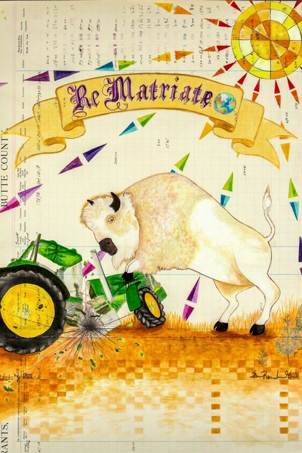 SunRose IronShell: With ledger art, I can hold the narrative as a Lakota STILL living on the Great Plains. I can share my life experience, dreams, and most of all, bear witness to the histories we are living now. Artists are a reflection of the people. John Trudell says, “We must think clear and coherently for the next seven generations.” Every day is an opportunity to make a difference. Like my ancestors before me, I am able to create my own sovereign economics too. The thing about ledger art is that it has always held an economic value, it's probably the most American thing you can do—buy and collect ledger art. I have been participating in juried art markets throughout the country and currently have a fashion collection from these drawings.