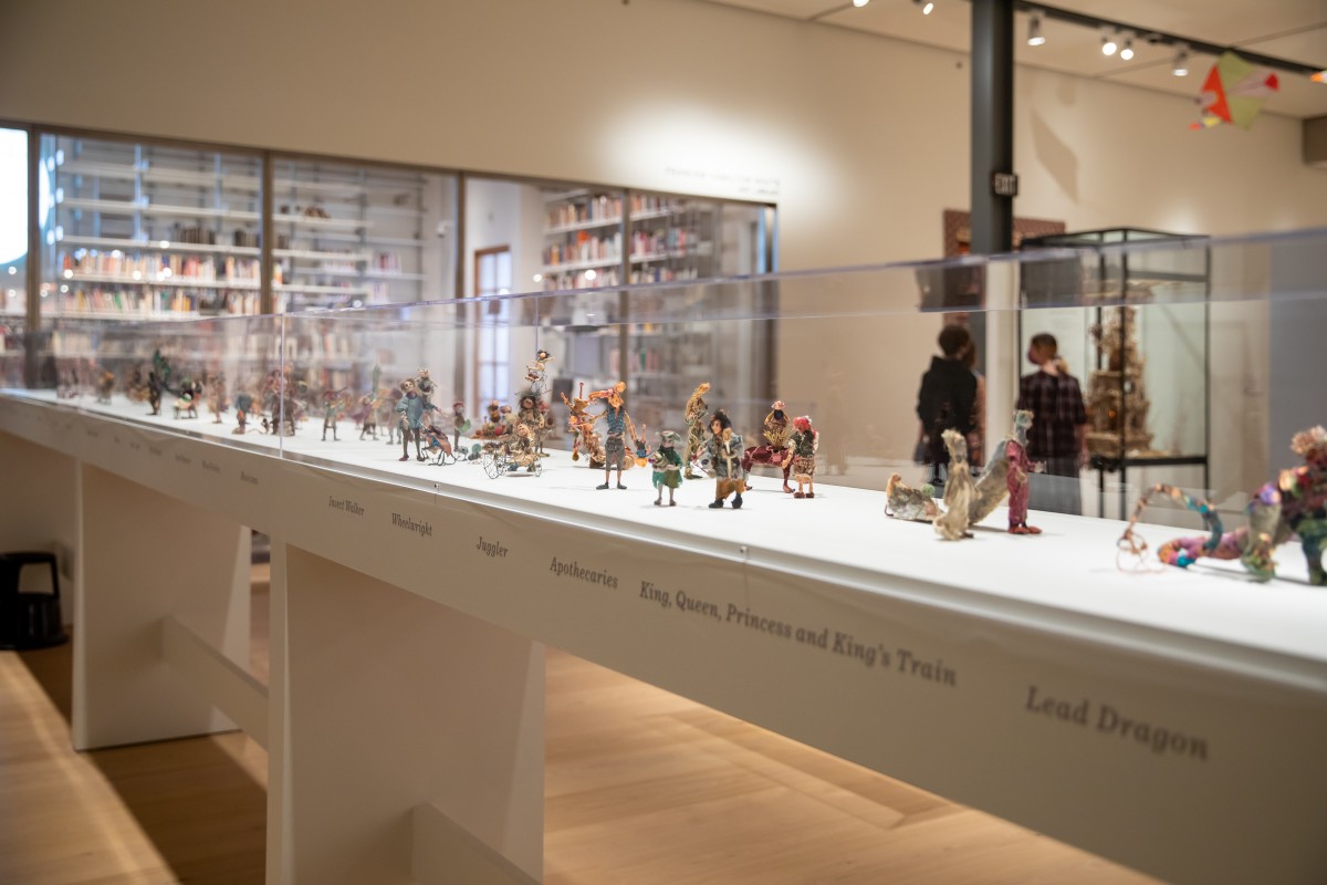 Many of the objects in the Taylor Gallery were made out of love between parent and child. The artists, Sonabai Rajawar and Alice Hudson were driven to create toys and worlds of wonder and play for their children from humble materials they found around them. Alice continued her work on Procession for her daughter Elizabeth for over 25 years. Its creation was an act of love, and Elizabeth was able to collaborate with her mom and learn the art of crafting with scraps to make something beautiful late into her mother’s life.