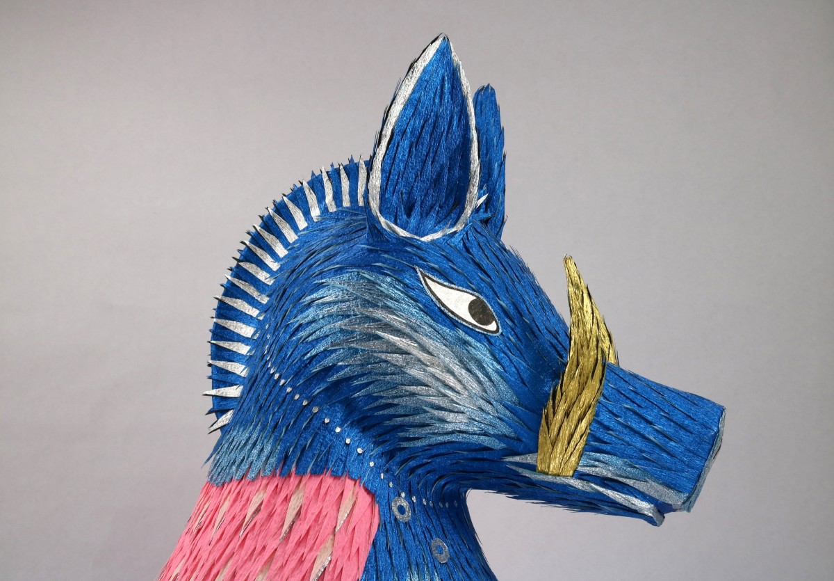 Benavidez is an accomplished fine art paper sculptor whose work plays on themes of race, sexuality, art, sin, humor, ephemerality, and beauty. His pieces have been exhibited in numerous group and solo shows, and in places such as Craft In America, Mesa Contemporary Art Museum, Art Design & Architecture Museum at UCSB, and Palo Alto Art Center. And if you read The New York Times, you probably saw his work, Javelina Girl (Illuminated Piñata No. 14) featured on the cover of the Fine Arts & Exhibits section this past October. Needless to say, if you haven’t seen his piñatas yet, you probably should.