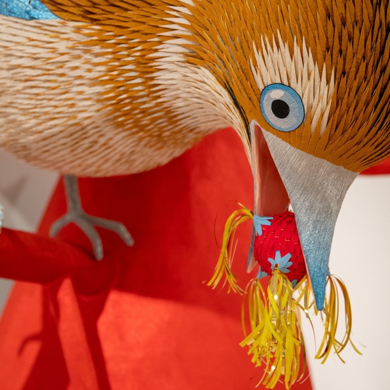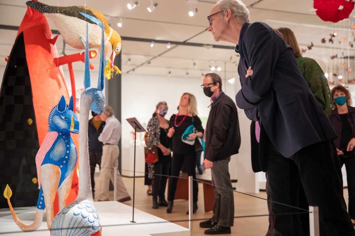 Roberto Benavidez explored his way into making piñatas, inventing his own unique layering technique that plays with color and requires precision cutting. His works in the Museum’s current exhibition, Piñatas: The High Art of Celebration, lure viewers in (maybe even tempting them to cross over those sacred museum stanchions) to take a closer look at his works of art.