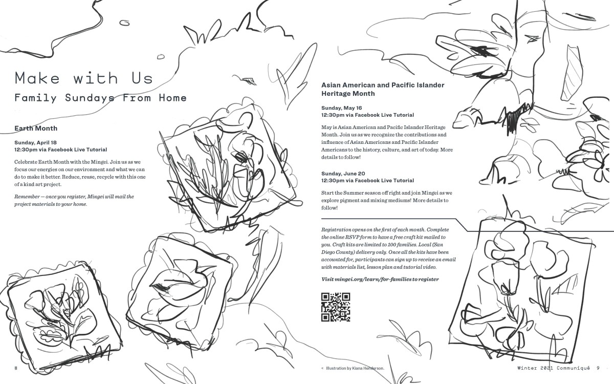 Meet Kiana Henderson, guest illustrator for the spring edition of Mingei's member journal, Communiqué. Kiana is a Black, self-taught illustrator with a degree in graphic design from San Diego State University. She is a multi-talented creative, specializing in illustration along with character, stationery, and apparel design; social media marketing; typography, and packaging design.