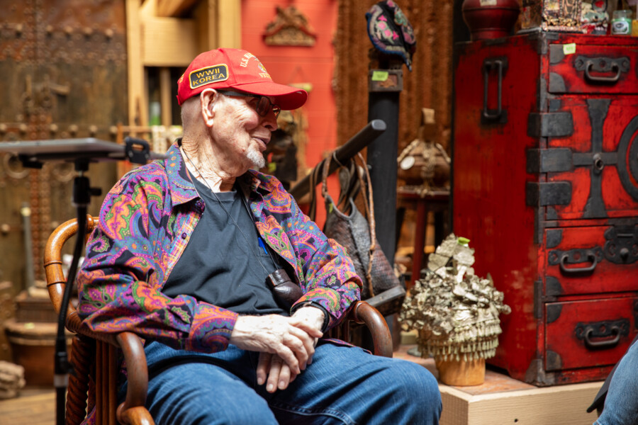 Wayne, then 96 years old, lived in Solana Beach—just 25 miles up the coast from Mingei, with his wife and fellow artist, Barbara Chapman, who passed away in 2022. Wayne passed in September 2025. Together, they built a shared creative life rooted in art, community, and curiosity. For this interview, Wayne welcomed us warmly into the mid-century modern home, which was designed by local San Diego architect Kendrick Bangs Kellogg, and built by Wayne himself. Inside the living spaces are filled with ceramics, textiles, and woodworking from around the world, all the textures of a life shaped by art.