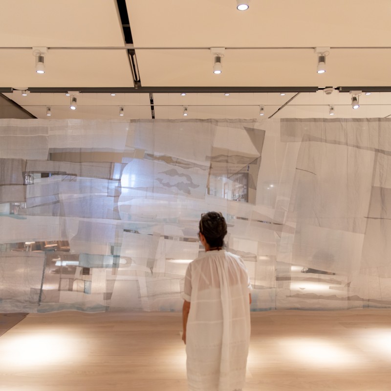 Inside, Outside and all the Spaces In BetweenChristina Kim, clothing designer, artist and founder of design studio dosa, was commissioned to create two works of both beauty and function for the Museum's transformation: liquid2solid and sugi / kuruminoki. Her focus on zero waste has created a system for creative reuse, drawing on traditional handwork techniques, patchwork, and large-scale collaborations with communities around the world. In 2018 she received the prestigious Cooper Hewitt National Design Award, Fashion Design. Needless to say, she's amazing.
