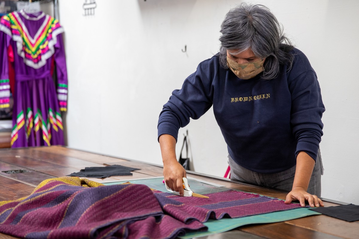 Sewing is my life and I am constantly designing new clothing and creating new inventory for both my brick and mortar shop and online store. I began sewing when I was just eight years old and I am thankful that my parents taught me this incredibly rewarding skill. Sewing has brought so much joy and opportunity into my life! I moved my shop, Sew Loka, to Barrio Logan in 2018 and it was one of the best decisions I ever made. The community in Barrio Logan is strong and supportive and I am grateful to live and work in such close proximity to historic Chicano Park.
