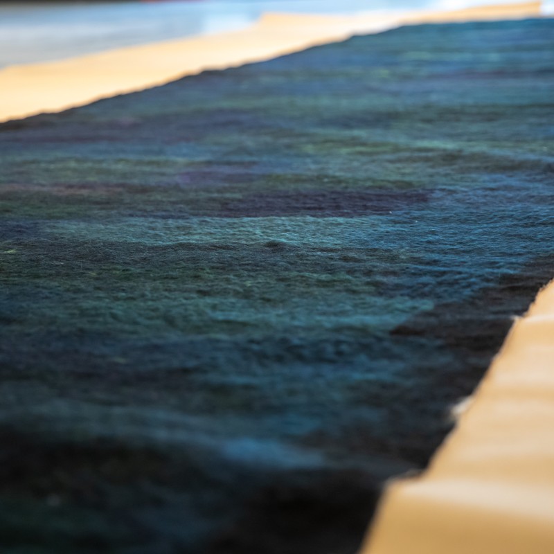 TransformationContemporary artist and activist Claudy Jongstra is inspired by her land in rural northern Netherlands where she both lives and creates her tactile, monumental wool murals. Collaborating with local farms, schools, and social programs and drawing on a deep respect for people’s interwoven narratives, land, and tacit knowledge, Jongstra’s creative process actively reimagines and revitalizes the local landscape from monocultural production toward a more diverse and ecologically-just model. Her large-scale works can be found in public spaces, libraries, and museums; and soon Mingei International Museum will be added to this list.