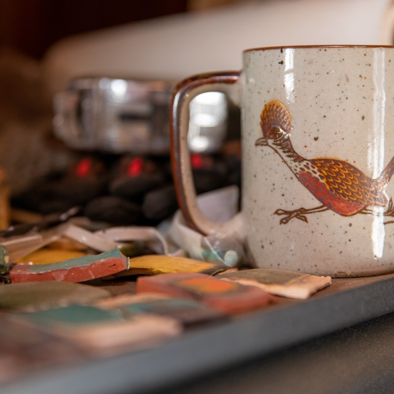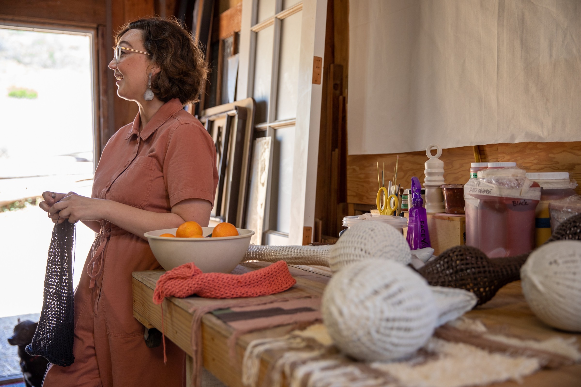 This is where I grew up, and I take inspiration from the texture of the landscapes and particularly the rock formations here. It’s a naturally dry California terrain. Even when the avocados are ripe, there’s not a lot of lush greenery. It’s a really “dry shade” outside, so my color palettes are muted and earthy.
