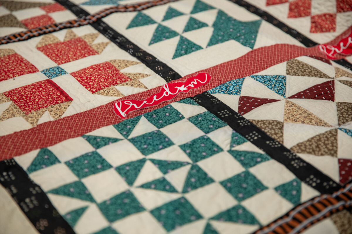 PK: I think the first quilt that probably inspired me was the Underground Railroad quilt, and I never thought I was going to make one. The main reason is because to make that quilt, you have to follow a pattern, and I was always a rebel–my poor teacher. I would always just do what I wanted to do, so my blocks, a lot of times, weren’t matching, and to do an Underground Railroad quilt, you have to stick to the pattern.