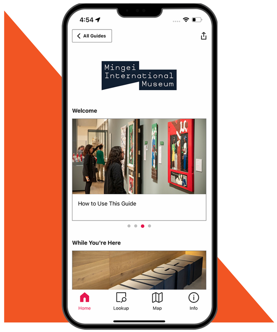 Dive deeper into the world of folk art, craft, and design at Mingei International Museum through our Digital Guide, accessible through the free arts and culture app, Bloomberg Connects. This guide offers additional context for current and past exhibitions, select objects within our collections, and stories from curators, artists, and Museum staff. Use the map to tour artworks around the building or to find your location within the building.